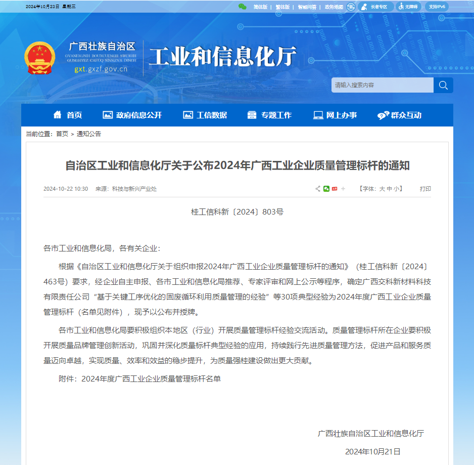 近日,廣西壯族自治區(qū)工業(yè)和信息化廳公布了2024年度廣西工業(yè)企業(yè)質(zhì)量管理標(biāo)桿名單,梧州制藥“中藥口服制劑生產(chǎn)車間應(yīng)用精益生產(chǎn)管理經(jīng)驗(yàn)”成功入選,公司連續(xù)第三年榮獲“廣西工業(yè)企業(yè)質(zhì)量管理標(biāo)桿”稱號(hào)。