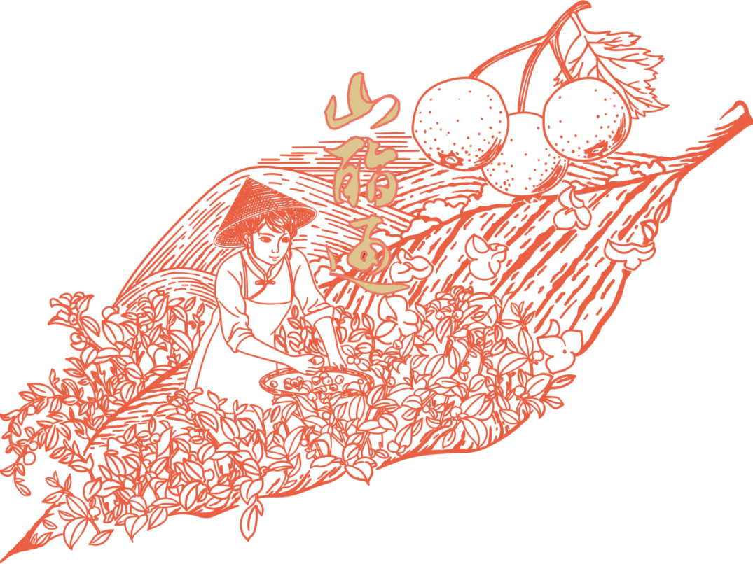 甘露凝香,一葉知秋,云山好物,百草凝珍。作品通過中國傳統(tǒng)線描畫,將公司新產(chǎn)品山酯通茶飲的產(chǎn)品特色凝聚于畫作。構(gòu)思來源于產(chǎn)品所使用的原料均取自秋天高山植物提取物的產(chǎn)品特性,將高山、茶園、果實(shí)和采摘?jiǎng)谧鲌鼍皾饪s于一秋葉之中。圖中遠(yuǎn)山層巒疊嶂,如一幅寫意水墨徐徐展開,近景茶園蒼翠,采茶女素手纖纖喜悅勞作,層次分明,虛實(shí)相生,疏密得當(dāng),精妙構(gòu)圖詮釋了產(chǎn)品采擷山野醇厚,醞釀歲月回甘之特性。
